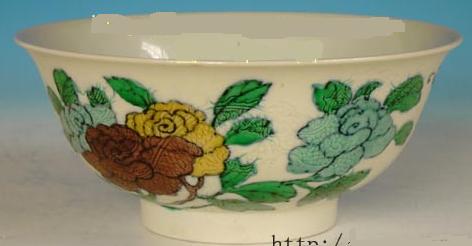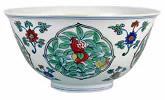 | AE1 | 豆彩 闘彩 明景徳鎮窯 豆彩とは、成化年に完成した色絵です。素地にコバルトの青い顔料で文様の輪郭を描き、透明の釉をかけて焼き、その上から赤・黄・緑の色釉で絵付けし、ふたたび低い温度で焼き付けたものです。それぞれの色が美しく競いあってみえることから、闘彩ともいわれています。 色の写しあいはよいので、人気があります。清まで焼き続いたですが。技量的には明成化年より落ちています。 ![]() 成化官窯闘彩標本 宣徳官窯闘彩標本 闘彩に成化款のものは清の朗窯の製品と言われています。 |