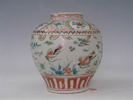 康熙年末期、景徳鎮は五彩と琺瑯彩技法を参考に、粉質の顔料を利用した。顔料層は薄いほか、同色調が暈ける効果があるので、より豊富で軽やかな絵付けができました。顔料もエメラルほど高いではないので、すぐ人気を得ました。![]() 雍正年から、粉彩絵技法大いに発展しました。色絵磁器の主流になり、各地で大量生産されました。 琺瑯彩と粉彩の形成期には、二つ、三つの技法を同時に応用した色絵器も多く存在する。特に乾隆年の遺品が多い。 早期粉彩(康熙年、軟彩)の絵絵付け技法は従来の彩絵技法(硬彩)と区別はすくないですから、”康熙無粉彩”との諺があります。 成熟期(雍正年以降)の粉彩技法は、「ガラス白」という下地を作ってから、その上で数十種類に達する豊富な配色で、立体感のある絵を仕上げた。中国粉彩の最高峰とされています。 乾隆年、粉彩を含む複合的な技法を多く取り入れたため。中国陶磁歴史上絢爛豪華な時代でした。 同治年には、粉彩顔料の安さおよび技法の普及により、大量な民窯品が生産されていました。 |