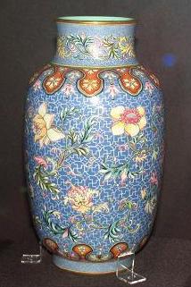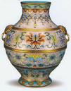 康熙年景徳鎮官窯(御厰窯)にて、西洋の無線七宝絵付け技術を磁器に絵付けを成功した。多彩な色絵磁器は出世した。当時は官製ですので、繊細に絵付けた小さいな器ばかりでした。応用した顔料は主に輸入エメラル彩ですから、色層は若干厚い、触る感じは凸凹です。なお、エメラル彩の欠点として同じ色の色調変化はほとんどないから、絵付けのセンスは七宝焼とほとんど変わらない。![]() ![]() 雍正年から、国産エメラル顔料は生産できたから、琺瑯彩器の生産も多くなりましたが、それほど上手ではない製品もありました。琺瑯彩技法は粉彩技法の形成に多く貢献した。雍正年琺瑯彩印章は”寿古”、”清香”などあります。 ![]() 乾隆年には、内府が景徳鎮から素磁胎を調達し、京の如意館文人を命じて琺瑯彩で絵製。宮内に窯を開き焼成した。品品皆精、底部に赤絵銘記念款、および”金成”、”旭映”、”先春”、”佳麗”印章あり。皇室鑑賞用および外国貴賓答礼用品でしたので、民間には知られていませんでしたが、イギリス女王へ一点が贈送されたため、初めて公開された。民国初期、故宮清室遺品整理時3百数点の蔵品は発見された。後半数以上は外部へ流失しました。 |