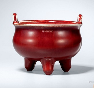 元の時代、銅紅を用いた釉里紅は作られています。 明の時代永楽~宣徳年を掛けて、景徳鎮御窯に於いて、初めて純色で安定した紅色の紅釉を焼成した。後正徳年に朝廷がこの色の器を祭器に用いていたため、祭紅または霽紅との呼び名もあった。 祭紅は普通の紅釉のように”ファッション”感覚な艶気がなく、まるで”スーツ”のようなシーンとした穏重なイメージです。紅釉の中の最高級品とされます。中国の古代文献には”祭紅の色は朱霞のこどく、誠に万代の名瓷の冠たる者也、其の紅釉発色の特徴は:絢爛しない、度を過ぎない、垂れ込まない、ヒビ(貫入)しない”と言う。 清の早期(康熙44年)、再び景徳鎮の朗窯より辰砂器が復活されました。朗窯器は朗窯紅と呼ばれました。清の乾隆年まで焼成していた。以降官窯が廃止され、その技術は景徳鎮の民窯に傳承されました。 (なお、近代の研究によると明祭紅と清朗窯紅(中の祭紅)の釉薬の化学成分は違うから、配合も違うだろうと言われます。) |