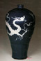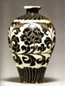 古窯の伝統ある釉薬、鉄分を大量含有したため黒く発色する。黒釉陶から黒釉磁器まであります。明の時代永楽年の製品は特に艶がよいから「烏金釉」と呼ばれます。遺品はは少ないです。 西晋黒釉鶏頭壺 |