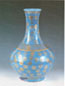 | 明祭藍標本 明宣徳官窯藍釉、白抜標本 明成化官窯藍釉白抜標本 清の時代には瑠璃釉器は多く作られています。年代遅いほど発色は柔らかく、明亮になり、刻文や金彩装飾ともなうものも見られます。 ![]() (光緒年金彩瑠璃瓶) |