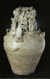 史上一番早期的な青磁器→西周の時代原始青磁壺![]() 原始青磁は高温灰釉から改良したものと見られるため、一般的には低温灰釉は”灰釉陶”と呼ばれ、高温灰釉と原始青磁の区別ははっきりと区別できないこともあります。 ![]() 浙江省の北部一帯に分布する越窯は、後漢時代に本格的な青磁が焼成された、宋の時代まで長期にわたり、中国の青磁の一大生産地として重要な地位を占めていた。あまり透明感のない土黄帯の青色釉でした。 西漢原始青釉三足二耳壺 ![]() 三国青釉谷倉 ![]() 西晋青釉羊 ![]() 東晋青釉羊頭壺 ![]() |