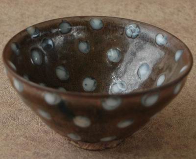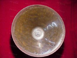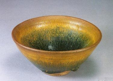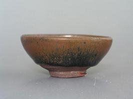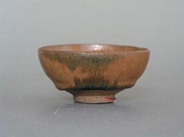 鉄釉窯変の一種です。唐の時代にの窯変で出来た高温結晶釉です。 唐~元、中国北方窯の釉薬に希金属が多く含まれるため、高温黒釉の表面に緑色~黄色の結晶状物ができます。できた釉面には緑と黄色混ぜるお茶葉末の感じが取れるから呼び名を得た。唐~元の茶葉末釉と呼ばれるものは自然窯変は基本ですから、色調多様で、発色部分もばらばらです。 右は元の時代磁州窯の鉄釉の窯変だと思います。 ![]() 明成化年景徳鎮官窯は初めて、意識的に茶葉末釉を作りだしました。色調子は艶のよい温かみのある黄色で、荒い黒い結晶が混ざっていますから、”鱚魚黄”と呼ばれます。ほとんど鑑賞用の高級品で遺品は極めて少ない。 清の早期から中期に掛けて多く作られています。 |