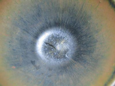 清乾隆年~晩清の間の茶葉末釉は黄色、灰色の点状結晶は見れます(有茶有末)。黄味は前朝より多くなりますが、基本的には”蟹殻青”とよばれる、金属艶のある青色調子のものもある(古銅彩)。この時期のものは日本では”そば釉”と呼ばれます。![]() |
