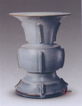 月白:五代柴窯の「雨過天青」釉の写しとして作られていました、もともと鈞釉は乳濁質なので、天青より薄い、白み帯で清澄感は不足ため、世の中から「月白」と名を付けられました![]() (北宋鈞窯月白釉出戟尊) 北京故宮博物館) |