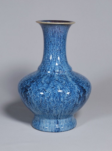近代は異常に鮮明的な青、緑系の窯変もあります。![]() (乾隆均釉窯変火焰青瓶) |