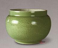 明から清の早期の龍泉窯の青磁釉は新しい特徴は現しました。緑よりも翠色で、透明感のあるガラス質の釉層になります。その原因は地理的に近い景徳鎮窯からの影響だと考えられます。![]() 清の時代に入るとほとんどの龍泉窯の職人は景徳鎮に移り、”龍泉窯”風格の作品は景徳鎮窯で作られていますが、黄色帯の鈍い色合いの青磁色になり、青磁技能的には衰退した。同時期、染付器と色絵器の上達により青磁の人気はも後退したと見られます。 ![]() |