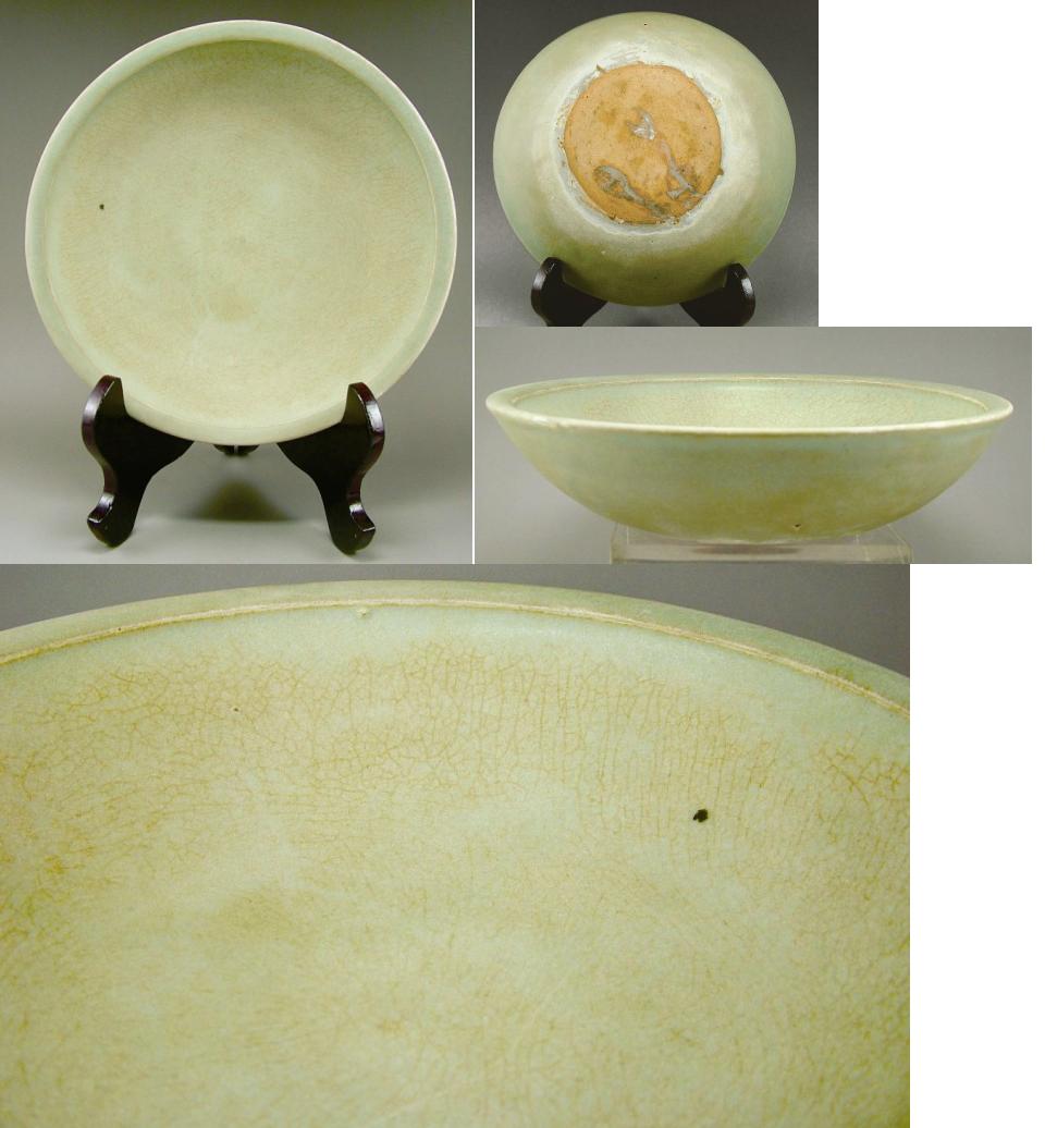 ![]() (元龍泉窯) 中国では一般的には「梅子青」と呼びますが、元~明の時代の梅子青は、宋後期龍泉窯の「梅子青」より、白みはなく、落ち着いた緑色は強いです。明代の龍泉窯作品は陰刻文洋は多く見られ、色合いは粉青~天青まで多変であることは遺品から確認できます。 ![]() この時期の龍泉窯の作品は依然として、造形的な素朴さが持ちます。釉層は宋の時代のものより大分薄くなりました。明中後期の龍泉窯後期作品よりも薄い感じです。透明感はありません。磁貫のないものはほとんど。 |