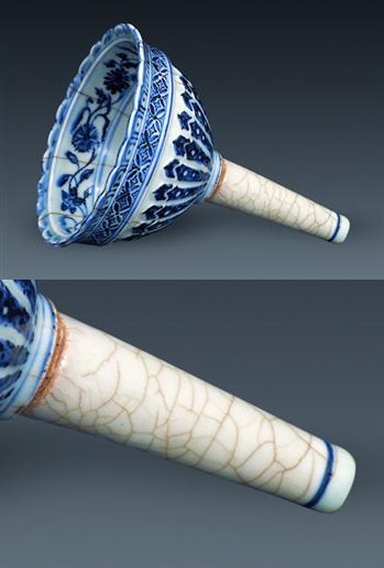 宋龍泉窯、元景徳鎮窯、明清景徳鎮窯には”哥窯戸”、”官釉戸”と呼ばれる哥窯/宋官窯の写しを専門とする窯工房があった。明清の”哥官工房”は官注貿易磁の生産を請け負ったので、官窯として認められる。これらの倣哥窯/倣官窯ものは、習慣上”哥釉”/”官釉”とも呼べれる。明宣徳、明成化、清雍正は倣哥/官が盛行し、品格や外見は宋磁に近い。品質も一番高い。