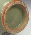 宋、明 | 器の上に更に器を重ねて数段積める。器の上下中央は窯足を入れるので、無釉な状態で、土質により、火色帯びることもあります。 明龍泉窯には多く見られます。 |