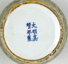明 | 高台は再び広く転じる外の高さは同一、2段高台とも言われます。 2重高台は足端まで釉垂を防止するための仕様です。清早期景徳鎮の製品に多く見られます。 |