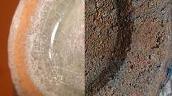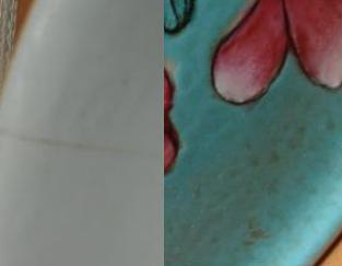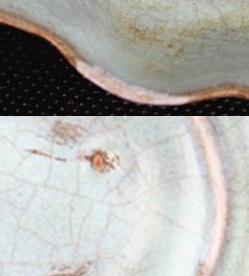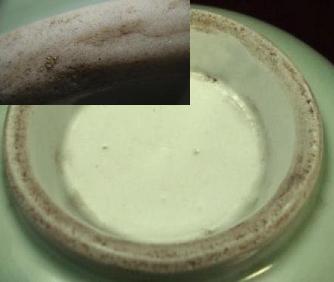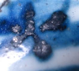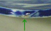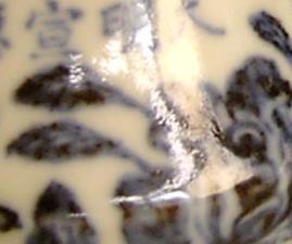 その4. | 年代や外部の影響で、釉下彩器の釉下彩部分の表釉には磁貫ができやすい。 | ||
