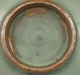 元~明洪武~永楽初期 | 高台は狭い。高台裏は無釉か、補修のための釉薬を少し垂らしている。 中心がてんこ盛りになっている。形から”鶏心臓”と呼べれる。 (宋の時代から圏足縁部削り修正は見られます。) |