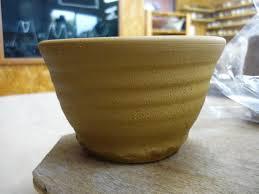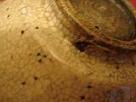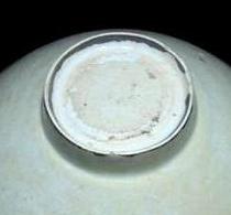 明 | 底部中央浅く削るものはよくあります。底部無釉。 匣詰焼底部黄色細砂付着する。 糊塗りのような薄い施釉のものもある。 |