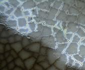牛の毛の直線沁み状、疎に無規則分布、若隠若現。 | 年代のヒビに沁みによる現象 | |