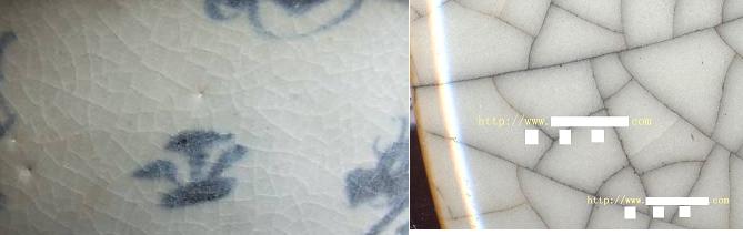 その2. | 窯出の時磁貫がない表釉が、年代や外部影響で出来た表釉の裂紋。 | ||