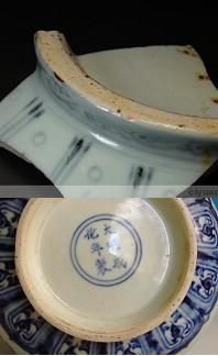 清 | 底部無釉、削り補修が見られます。 底部灰色は多い、轆轤の跡は残り(明の末~清早)。 |