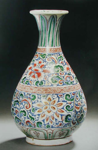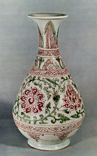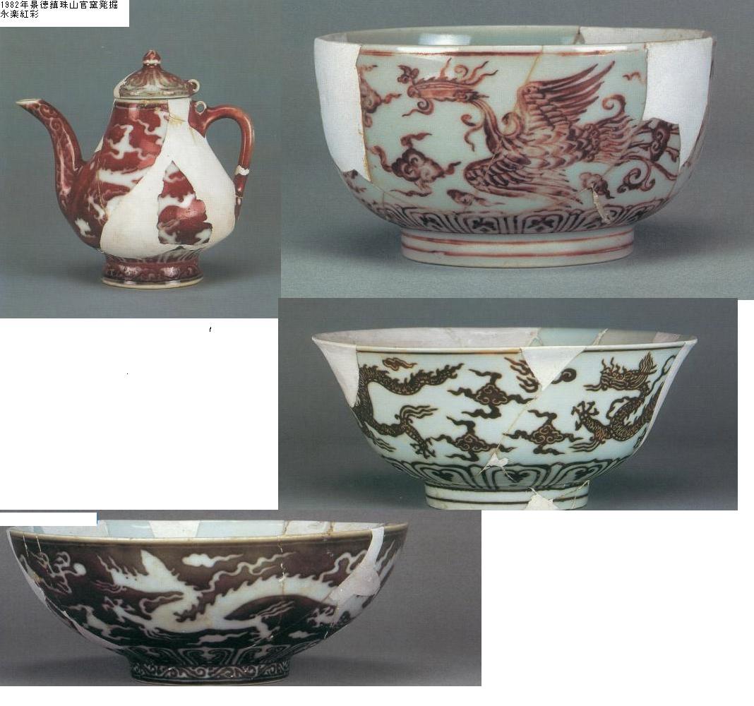 最新の研究では元の時代から写しが始まったと言う。![]() (明空白期) ![]() (明中期)明中期以降は紅緑彩と呼ばず、明末清初の地方窯の呉須赤絵など含めて、色絵へご参照。 |