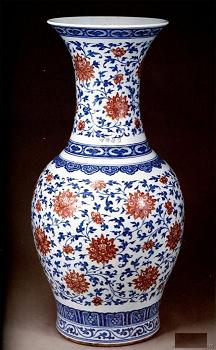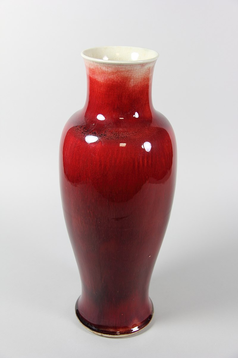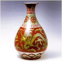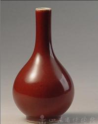 元の時代、銅紅を用いた釉里紅は作られています。 明の時代永楽~宣徳年を掛けて、景徳鎮御窯に於いて、初めて純色で安定した紅色の紅釉を焼成した。後正徳年に朝廷がこの色の器を祭器に用いていたため、祭紅または霽紅との呼び名もあった。 祭紅は普通の紅釉のように”ファッション”感覚な艶気がなく、まるで”スーツ”のようなシーンとした穏重なイメージです。紅釉の中の最高級品とされます。中国の古代文献には”祭紅の色は朱霞のこどく、誠に万代の名瓷の冠たる者也、其の紅釉発色の特徴は:絢爛しない、度を過ぎない、垂れ込まない、ヒビ(貫入)しない”と言う。 清の早期(康熙44年)、再び景徳鎮の朗窯より辰砂器が復活されました。朗窯器は朗窯紅と呼ばれました。清の乾隆年まで焼成していた。以降官窯が廃止され、その技術は景徳鎮の民窯に傳承されました。 (なお、近代の研究によると明祭紅と清朗窯紅(中の祭紅)の釉薬の化学成分は違うから、配合も違うだろうと言われます。) |