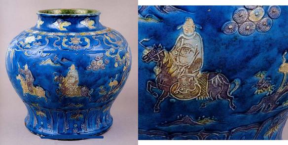 一番早い発見されている銅藍色(瑠璃)の釉薬は唐の時代の品。![]() |