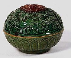 明早期銅還元焼成した金属艶の緑釉は「孔雀緑」とよばれます。![]() |