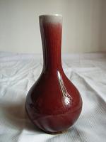 近代は異常に鮮明的な青、緑系の窯変もあります。![]() (乾隆均釉窯変火焰青瓶) |