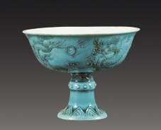明永楽年景徳鎮焼成した淡青緑の釉、人気があります。清の後代の窯から多くの写しが作られています。 翠とは鮮やかな若緑のことです。 |