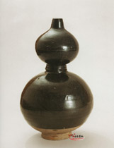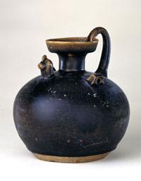 古窯の伝統ある釉薬、鉄分を大量含有したため黒く発色する。黒釉陶から黒釉磁器まであります。明の時代永楽年の製品は特に艶がよいから「烏金釉」と呼ばれます。遺品はは少ないです。 西晋黒釉鶏頭壺 |
