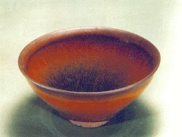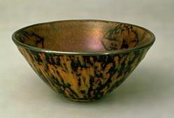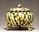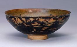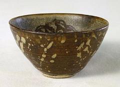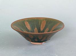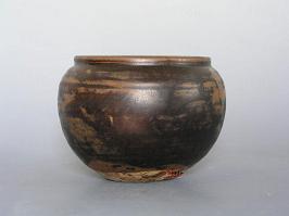 鉄釉窯変の一種です。唐の時代にの窯変で出来た高温結晶釉です。 唐~元、中国北方窯の釉薬に希金属が多く含まれるため、高温黒釉の表面に緑色~黄色の結晶状物ができます。できた釉面には緑と黄色混ぜるお茶葉末の感じが取れるから呼び名を得た。唐~元の茶葉末釉と呼ばれるものは自然窯変は基本ですから、色調多様で、発色部分もばらばらです。 右は元の時代磁州窯の鉄釉の窯変だと思います。 ![]() 明成化年景徳鎮官窯は初めて、意識的に茶葉末釉を作りだしました。色調子は艶のよい温かみのある黄色で、荒い黒い結晶が混ざっていますから、”鱚魚黄”と呼ばれます。ほとんど鑑賞用の高級品で遺品は極めて少ない。 清の早期から中期に掛けて多く作られています。 |