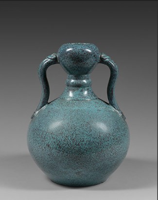 清乾隆年~晩清の間の茶葉末釉は黄色、灰色の点状結晶は見れます(有茶有末)。黄味は前朝より多くなりますが、基本的には”蟹殻青”とよばれる、金属艶のある青色調子のものもある(古銅彩)。この時期のものは日本では”そば釉”と呼ばれます。![]() |