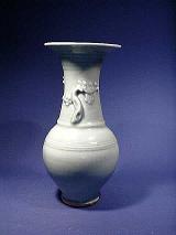 元の時代景徳鎮の陶芸は”承上継下”との役割を発揮したと言われます。古い伝統を継承しながら、画時代的な技法をいつくか開拓しました。元後期が出現した元青花や釉里紅なお釉下彩は、明の時代で成熟期に向かえ、花を咲きました。 元中期、龍泉窯匠人達は多く景徳鎮に移り住み、青磁や青白磁など伝統的な単色釉を変貌しながら、ひとつ特に注目されている白釉を創立しました。色は鵝鳥卵の色に似ているから、”卵白釉”と呼ばれました今や”卵白釉”と呼びます。 卵白釉の定義は青白色の乳濁釉です。青白磁ほど透明感がない、青磁より厚い。天青色の鈞釉に一番近いです。元卵白磁遺品は元の時代景徳鎮代表的なものとして多く発見されています。 官用銘”枢府”款の卵白磁壺の発見は、卵白磁の身価が一気あがりました。 元の時代には朝廷は”枢府”という機構を景徳鎮に設置して、官用磁器の督製と徴用する役目です。元の時代は”国風尚白”のため、”卵白磁”は白釉として、官用品磁色とされていますので、”枢府青白釉”とも呼ばれました。 技法的には花枝の印文のものが多い(卵白磁が失透明性厚釉ですから刻文は会わない)器物形は大まかに宋の時代に引きついていますが、茶壷の形は幾つかの新しい変化が見られます。 明の時代に入ると永楽年に”甜白”と呼ばれる潔白な白磁が成功しましてから、卵白磁の歴史の幕が下ろした。 |