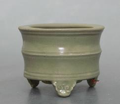 明から清の早期の龍泉窯の青磁釉は新しい特徴は現しました。緑よりも翠色で、透明感のあるガラス質の釉層になります。その原因は地理的に近い景徳鎮窯からの影響だと考えられます。![]() 清の時代に入るとほとんどの龍泉窯の職人は景徳鎮に移り、”龍泉窯”風格の作品は景徳鎮窯で作られていますが、黄色帯の鈍い色合いの青磁色になり、青磁技能的には衰退した。同時期、染付器と色絵器の上達により青磁の人気はも後退したと見られます。 ![]() |