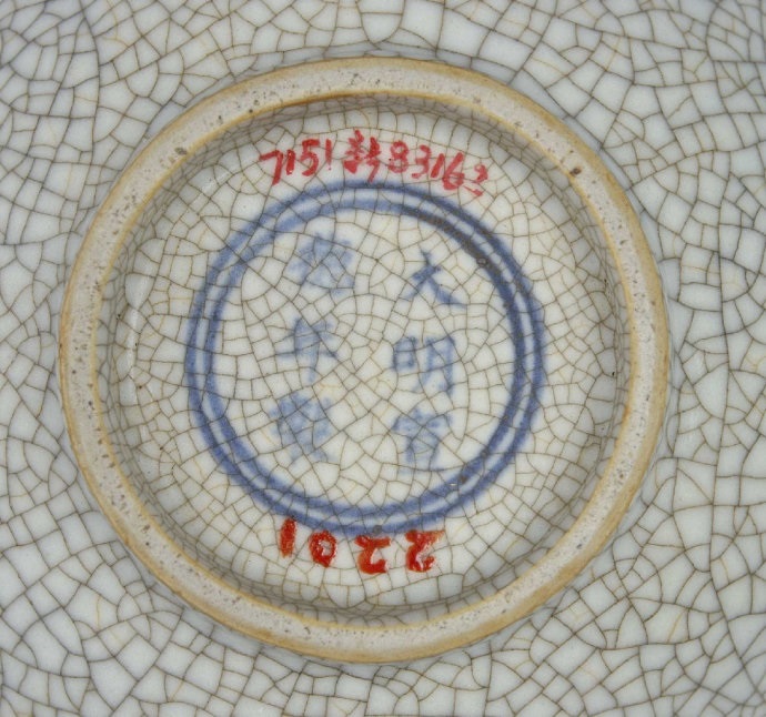 宋龍泉窯、元景徳鎮窯、明清景徳鎮窯には”哥窯戸”、”官釉戸”と呼ばれる哥窯/宋官窯の写しを専門とする窯工房があった。明清の”哥官工房”は官注貿易磁の生産を請け負ったので、官窯として認められる。これらの倣哥窯/倣官窯ものは、習慣上”哥釉”/”官釉”とも呼べれる。明宣徳、明成化、清雍正は倣哥/官が盛行し、品格や外見は宋磁に近い。品質も一番高い。