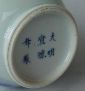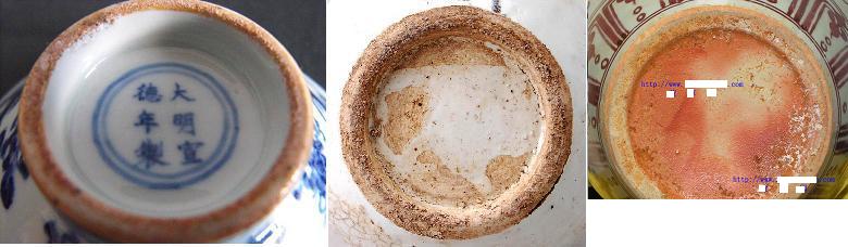 明中期、清三代 | 圏足断面は内向け弧形しています。明中期の場合は弧形度が大きい。 | |