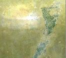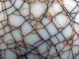 牛の毛の直線沁み状、疎に無規則分布、若隠若現。 | 年代のヒビに沁みによる現象 | |