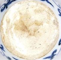 元末明初景徳鎮 | 元~明初の景徳鎮官窯用土(御土)に”麻倉土”と呼ばれる粘土を混ざっていました。器の底部の素地が不純物が見えます。 | |
