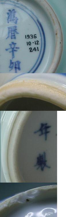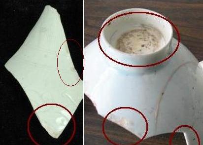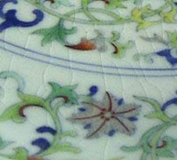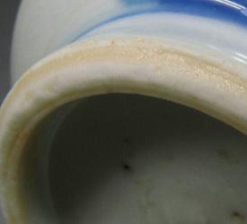 その4. | 年代や外部の影響で、釉下彩器の釉下彩部分の表釉には磁貫ができやすい。 | ||