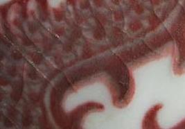 星状黒点、牛毛文と伴う。 | 銅紅釉窯変。明紅釉の特徴の一つです。 | |
