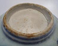 漢~唐 | 焼成時に破損、ヒビが多い。削りしない。 皿などの高台は高い。八字になっているのもある。 底部: 無釉、地がはっきりと見える。 餅型支えの跡が残る。 匣詰焼の場合は粗砂が付着する。 発掘品:土砂は地に浸み込む。 |