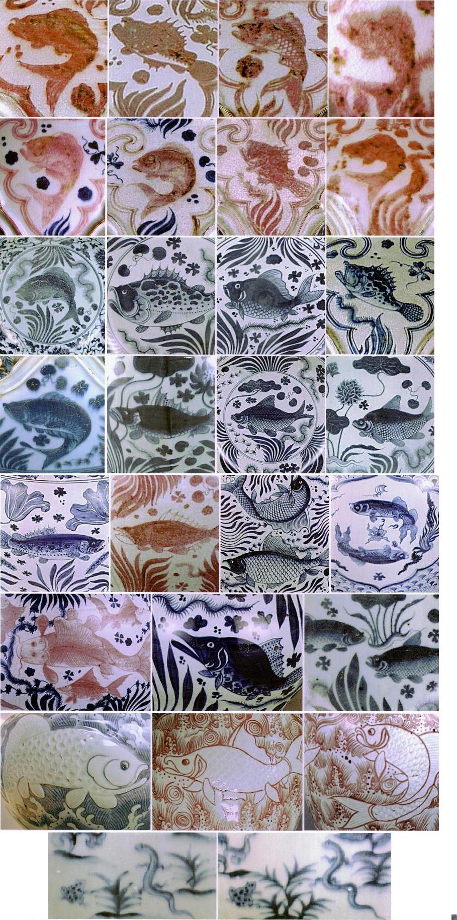 | 花、草、虫、瓜果、石など | 蓮(宝相華)、牡丹、菊 | 魚、鯰 | ||
