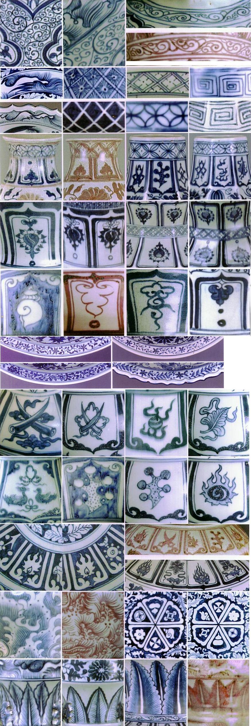 | 口縁、肩部、底縁、空白埋め文様 (回文、芭蕉文、青海波、七宝繋ぎ、窓式博古図、唐草文、風雲火山など) | ||||